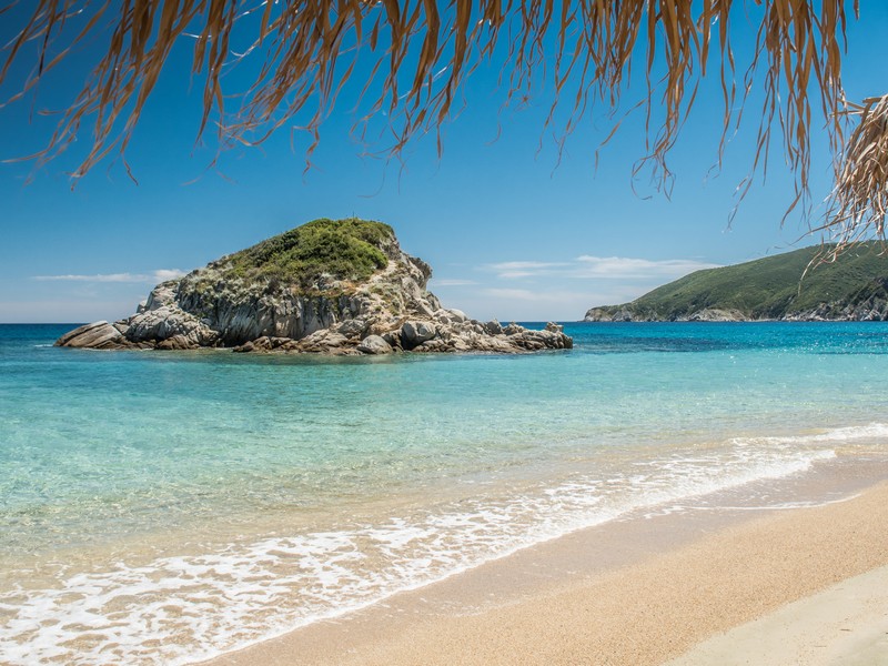 Journey 6.1 km south of Sarti, and you’ll find a gravel path leading to Agridia beach after about 1.5 km. This isolated bay remains a well-guarded secret.